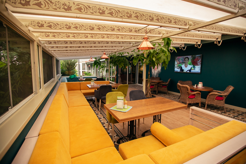 Двадцать четыре часа в сутки Гриль-кафе предлагает фирменные блюда, приготовленные на открытом огне. Гриль-кафе постоянно сотрудничает с местными фермерами и производителями, выбирая лучшие традиционные продукты в качестве ингредиентов для создания новых блюд.